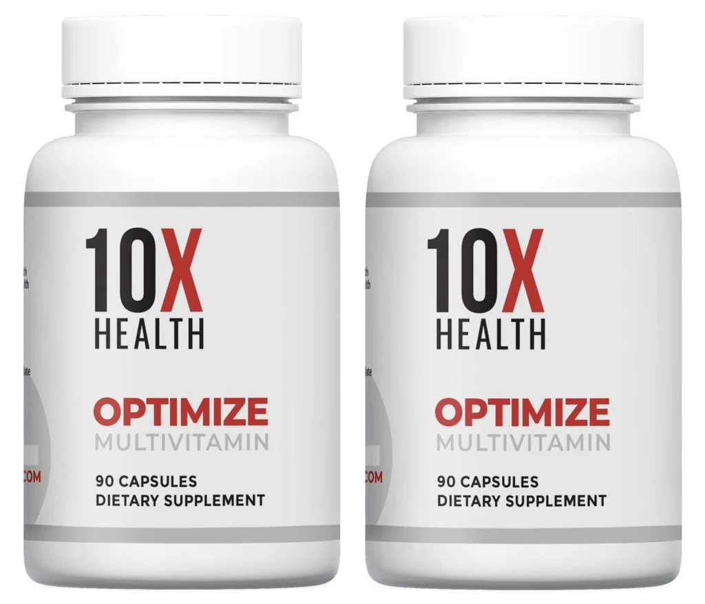 The 10X Health Optimize Methylated Multivitamin is a high-quality dietary supplement designed to support overall health and wellness. This 2-pack provides a total of 180 capsules, ensuring you have an ample supply of essential nutrients formulated for optimal absorption.